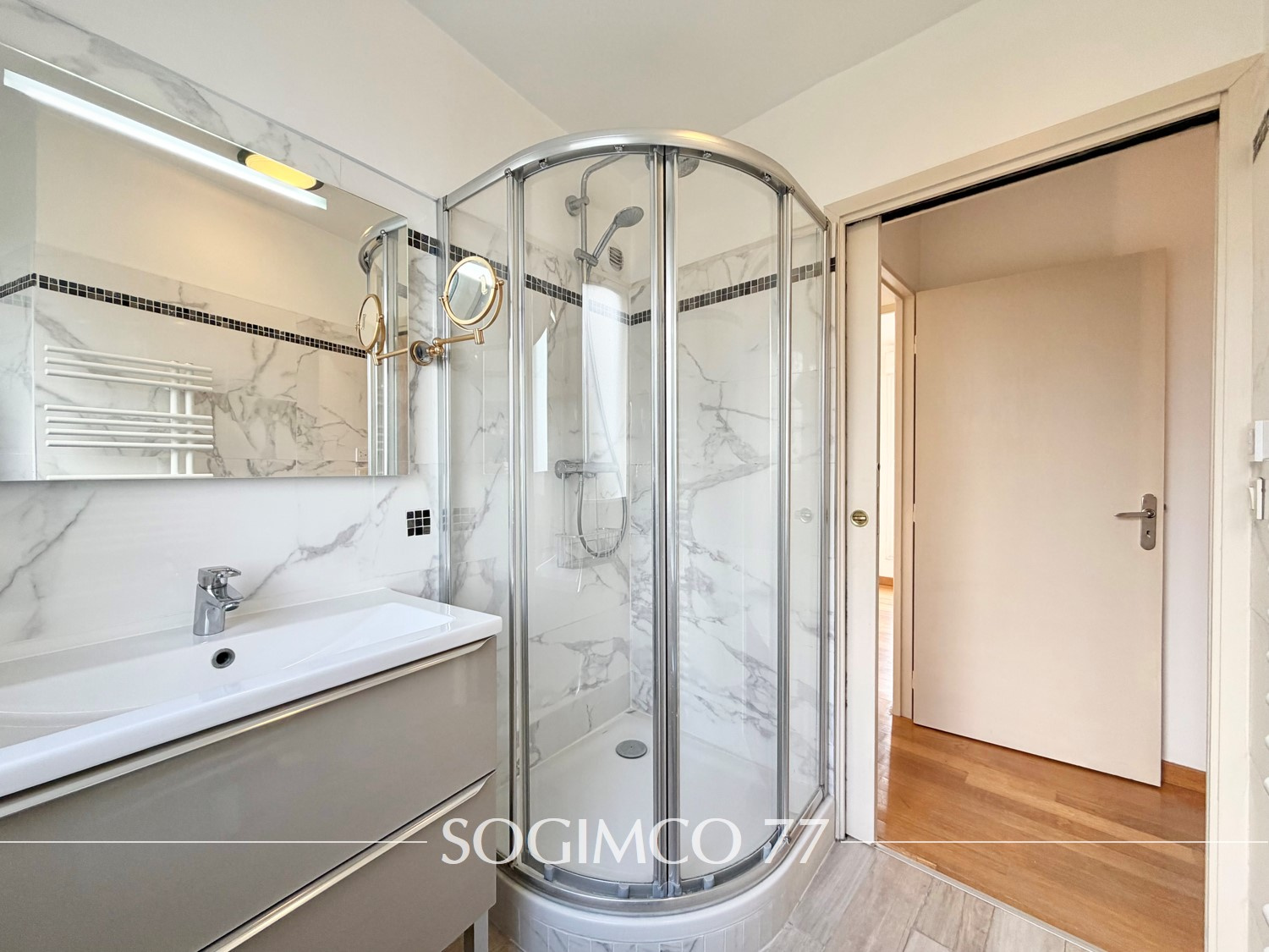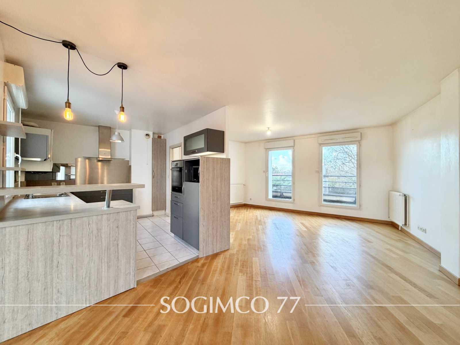 L'appartement est composé de : une entrée, un dégagement avec placard, un séjour de 35m² lumineux avec double exposition, une cuisine aménagée ouverte sur le séjour, une chambre avec dressing, une chambre parentale avec salle d'eau et placard, une salle de bains avec WC et deux terrasses. Deux places de stationnement en extérieur complètent ce bien.