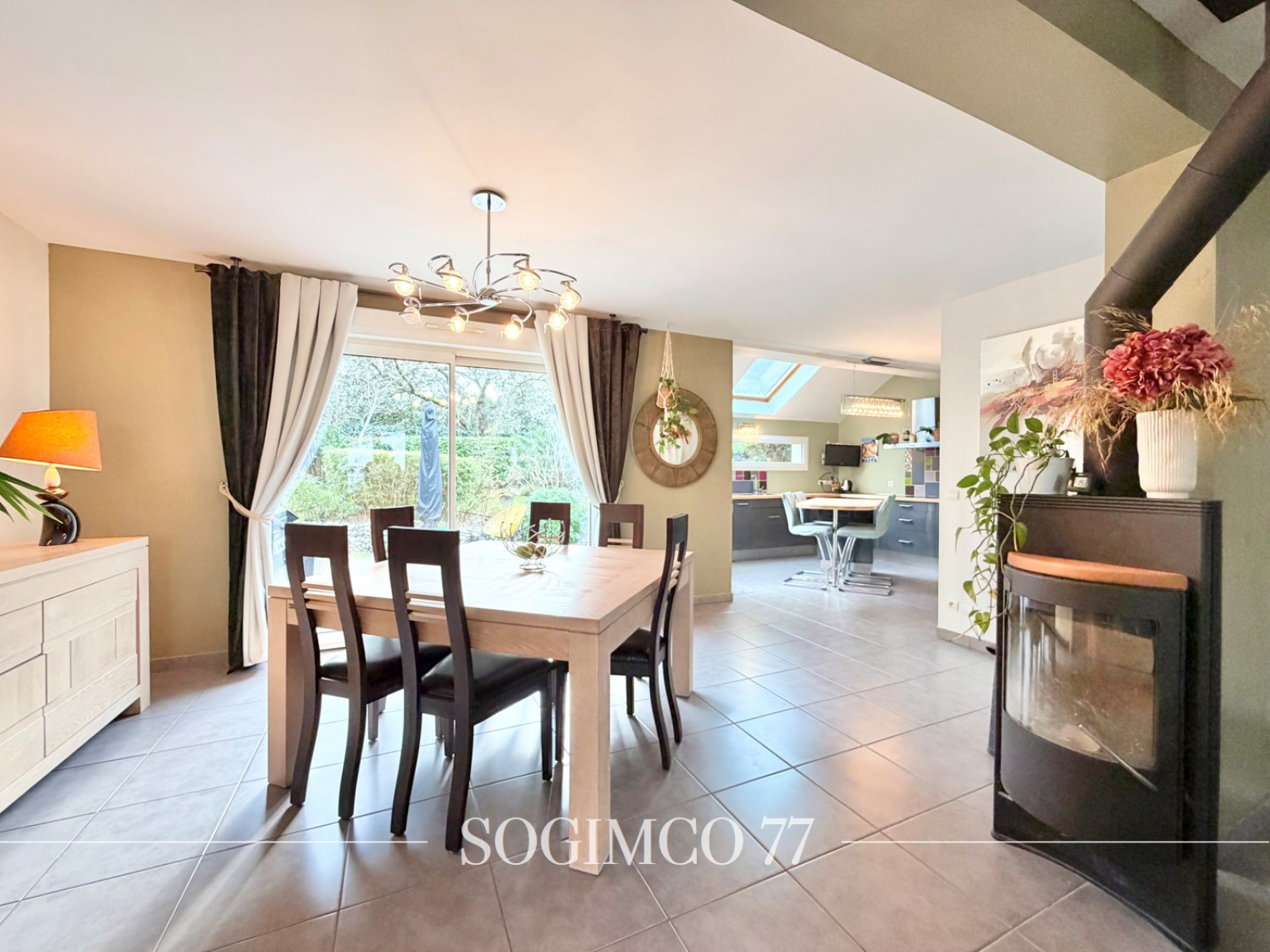 Au rez-de-chaussée, le séjour lumineux avec son poêle à bois créé une ambiance chaleureuse et conviviale. La salle à manger, ouverte sur la terrasse, est idéale pour profiter des beaux jours, tandis que la cuisine aménagée et équipée rend les repas faciles et agréables. On y trouve également une chambre au rez-de-chaussée, accompagnée d’une salle d’eau moderne, un WC suspendu avec lave-mains, une buanderie et un garage fermé.