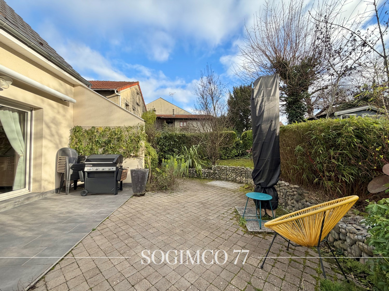 À l’extérieur, la terrasse et le jardin verdoyant permettent de profiter pleinement des journées ensoleillées, et une place de stationnement supplémentaire complète le bien.